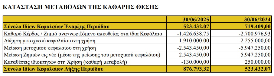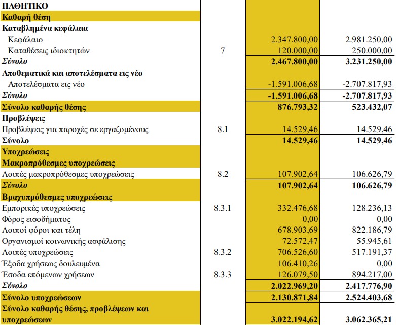Αναλυτικότερα, η κατάσταση χρηματοοικονομικής θέσης της ΠΑΕ: