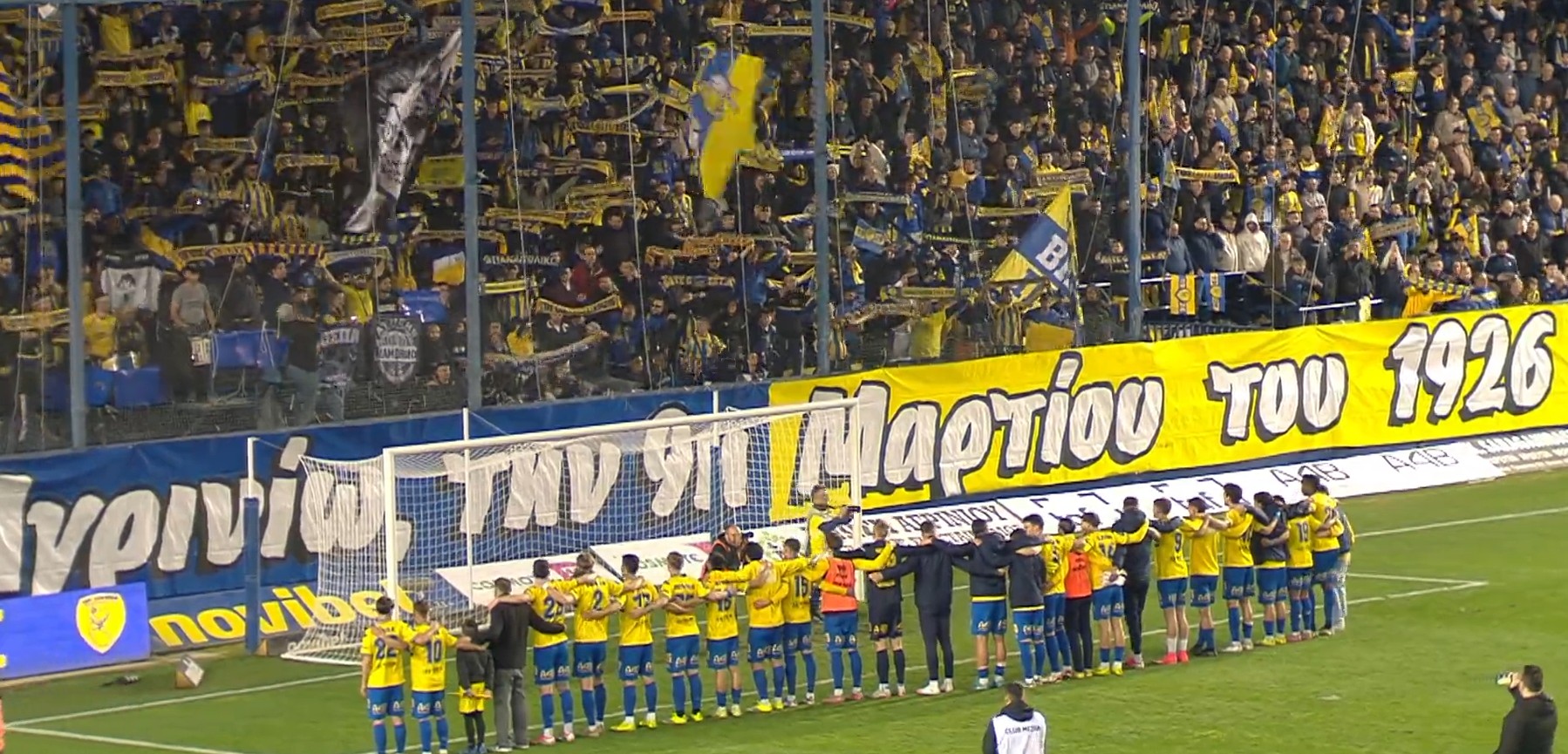Η ομάδα μία αγκαλιά και ο κόσμος να αποθεώνει τις κίτρινες και μπλε φανέλες μέσα στο γήπεδο που ζούσαν με την ψυχή τους μία μοναδική ατμόσφαιρα.