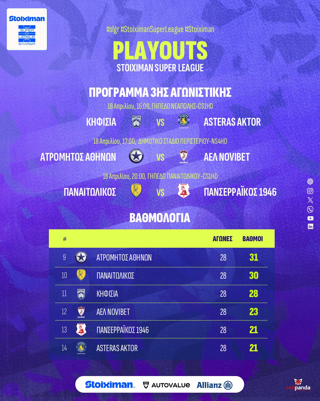 Η Super League επιστρέφει στην αγωνιστική δράση, με τον Παναιτωλικό να αντιμετωπίζει τον Πανσερραϊκό για την 3η αγωνιστική στα Play Outs.