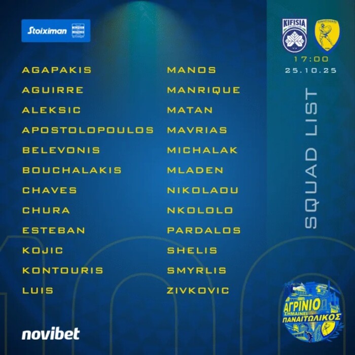 Στην αποστολή του εκτός έδρας αγώνα με την Κηφισιά συμμετέχουν οι ποδοσφαιριστές: