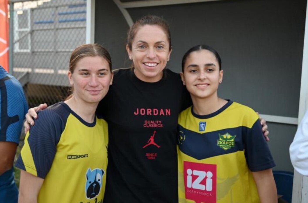 Και οι δυο τους έπαιξαν ποδόσφαιρο με τα κορίτσια και τους μίλησαν για τις αξίες του αθλήματος και τα πλεονεκτήματα που μπορούν να αποκομίσουν από τη συμμετοχή τους στην οργανωμένη «πλευρά» του αθλήματος.