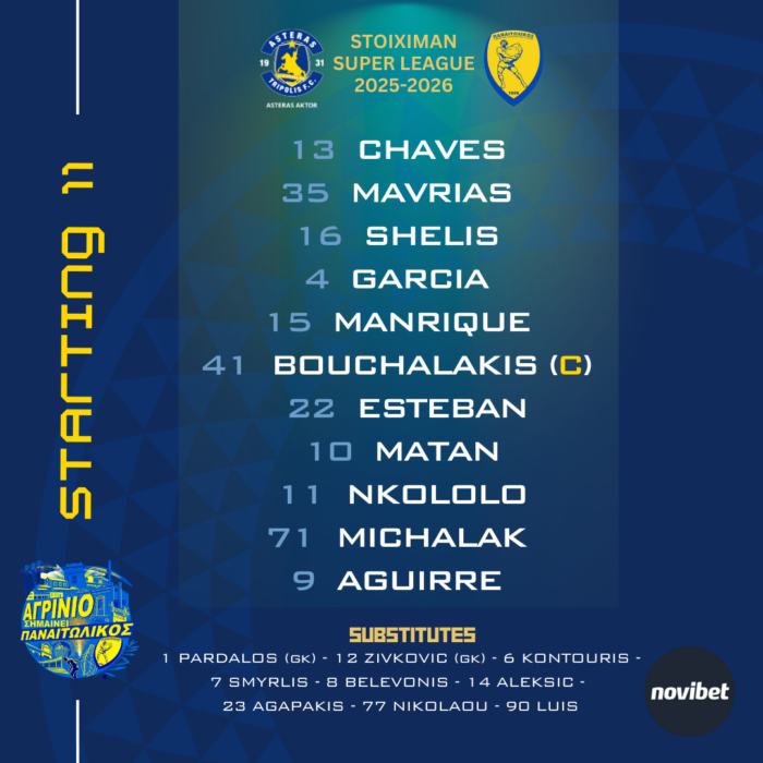 Η ενδεκάδα του Παναιτωλικού απέναντι στον Αστέρα