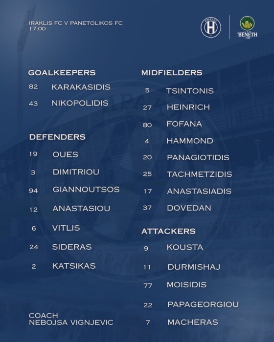 Με απουσίες θα παραταχθεί ο Ηρακλής στην αναμέτρηση με τον Παναιτωλικό, στο πλαίσιο της 4ης αγωνιστικής της League Phase του Κυπέλλου.