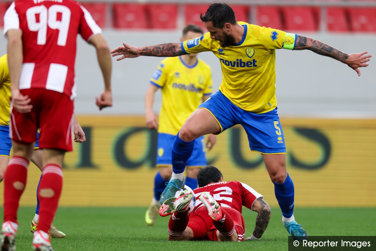 Φθάνοντας στο ημίωρο, ο Κόγιτς υπέπεσε σε φάουλ στο ημικύκλιο της περιοχής χοντρικά, δίνοντας ένα ακόμα στατικό στους γηπεδούχους. Η εκτέλεση του Τσικίνιο σταμάτησε στο τείχος. Στο 35′ ο Λουίζ επιχείρησε να μπει στην περιοχή από τα αριστερά, με τον Αποστολόπουλο να ανακόπτει σε κόρνερ. Σουτ του Σιπιόνι σε δεύτερο χρόνο, πέρασε εκτός.
