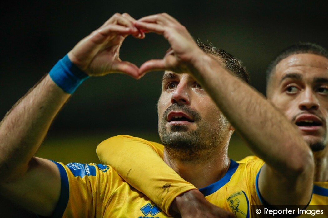 O 31χρονος εκ των αρχηγών των Καναρινιών αφού έκανε το 2-0 κόντρα στους Λαρισαίους έδειξε την εξέδρα κι όπως ανέφερε αφιέρωσε το γκολ που… χρωστούσε στην κόρη του.