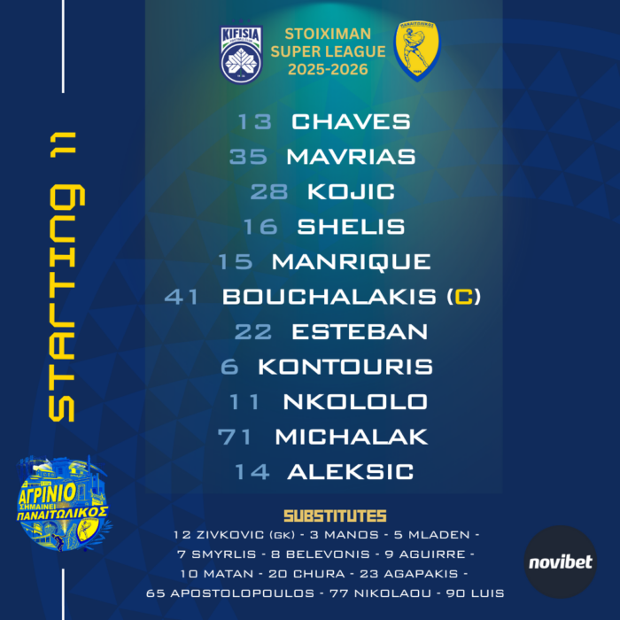 Γνωστή έγινε η ενδεκάδα που επίλεξε ο Γιάννης Αναστασίου για την αναμέτρηση απέναντι στην Κηφισιά, για την 8η αγωνιστική (17:00).