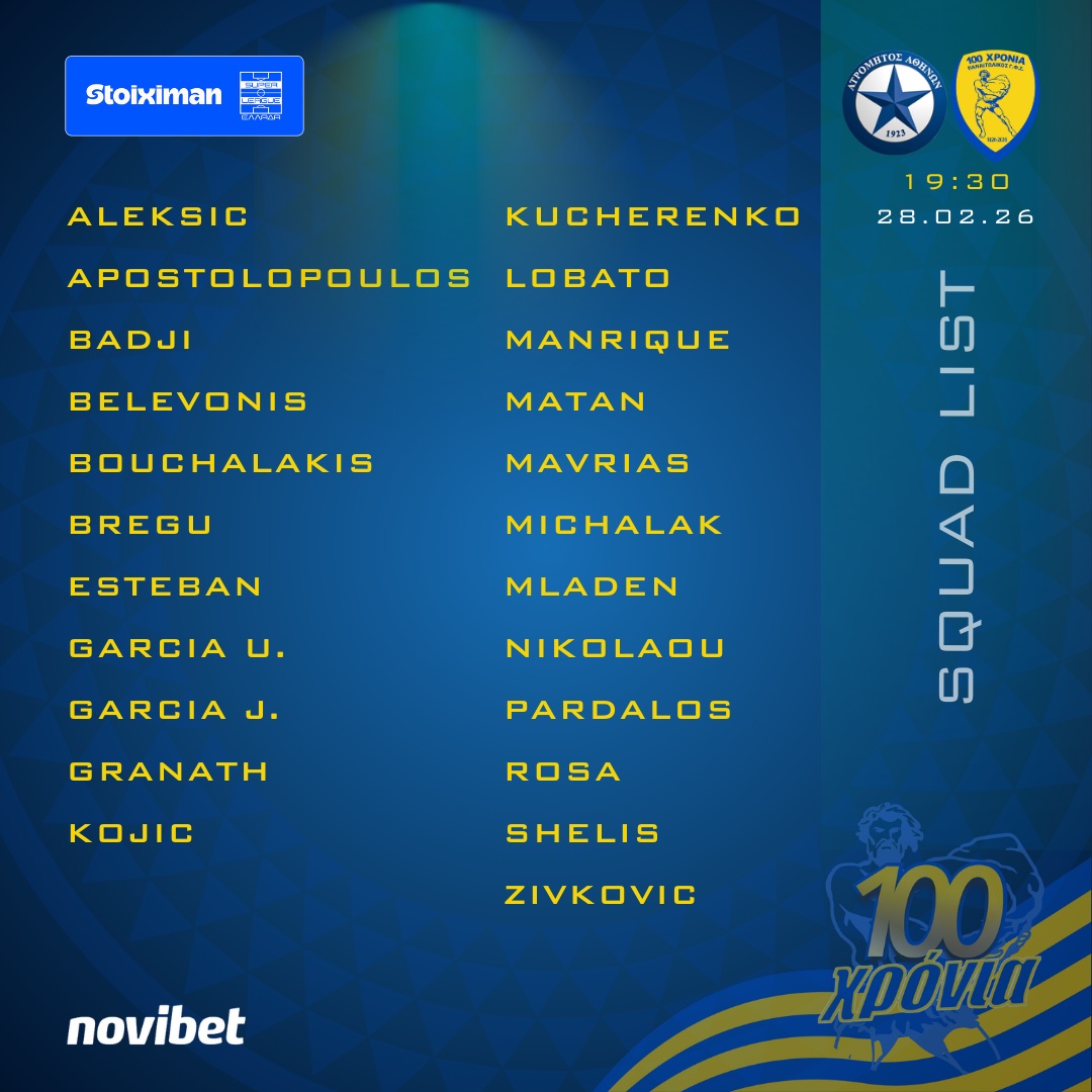 Άλεξιτς, Αποστολόπουλος, Μπάντζι, Μπελεβώνης, Μπουχαλάκης, Μπρέγκου, Εστεμπάν, Γκαρσία Ουνάι, Γκαρσία Χουάν, Γκράναθ, Κόγιτς, Κουτσερένκο, Λομπάτο, Μανρίκε, Ματσάν, Μαυρίας, Μίχαλακ, Μλάντεν, Νικολάου, Παρδαλός, Ρόσα, Σιέλης, Ζίβκοβιτς.