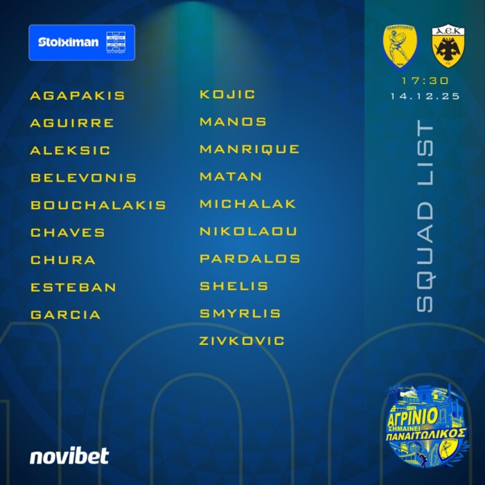 Με πολλές και σημαντικές απουσίες, όπως αναμενόταν, θα υποδεχθεί την ΑΕΚ στο Αγρίνιο ο Παναιτωλικός (Κυριακή 14/12- 17:30).