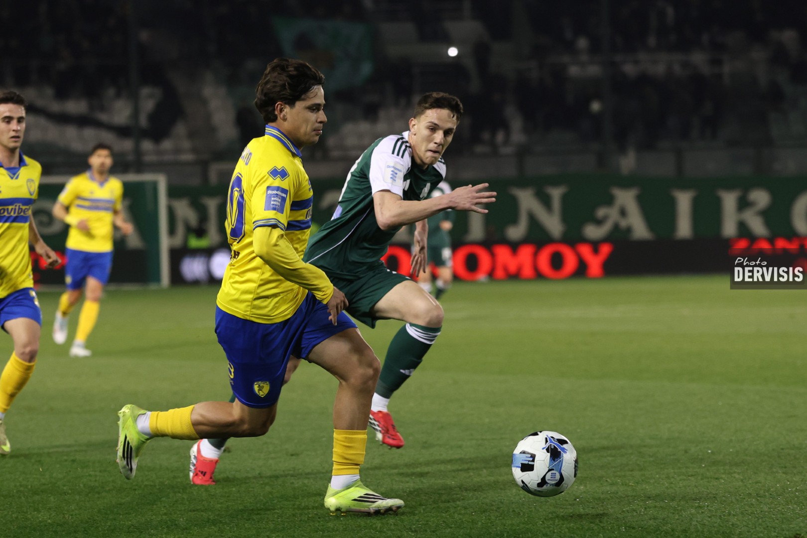Οι «πράσινοι» είχαν την πρώτη καλή στιγμή τους στο 9′, με δυνατό σουτ του Παντελίδη να διώχνει δύσκολα ο Κουτσερένκο και στην εξέλιξη της φάσης την άμυνα να μπλοκάρει προσπάθεια του Αντίνο.
