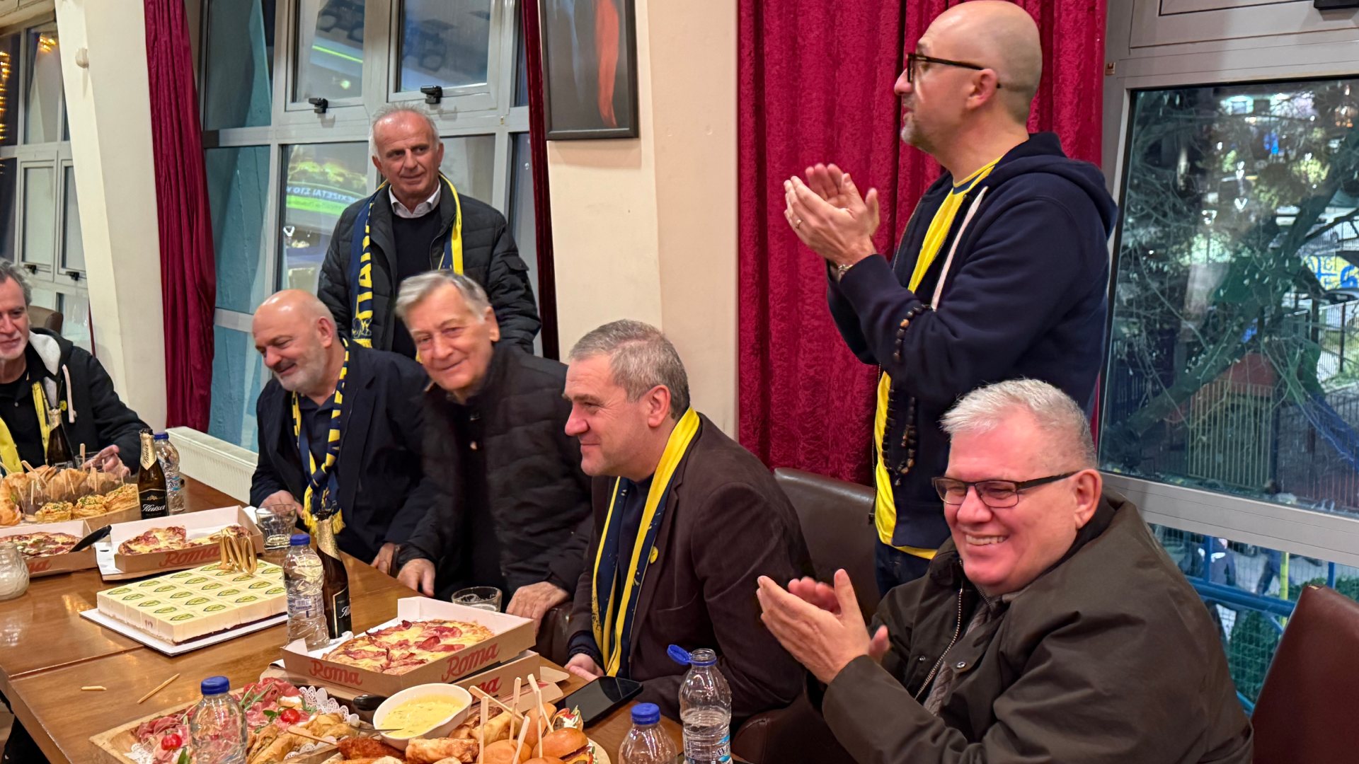 Μέλη της ομάδας πήγαν στο cafe του γηπέδου μια τούρτα στον μεγαλομέτοχο της «κιτρινομπλέ» ΠΑΕ, Φώτη Κωστούλα, ο οποίος έσβησε τα κεράκια με το συμβολικό νούμερο 100.