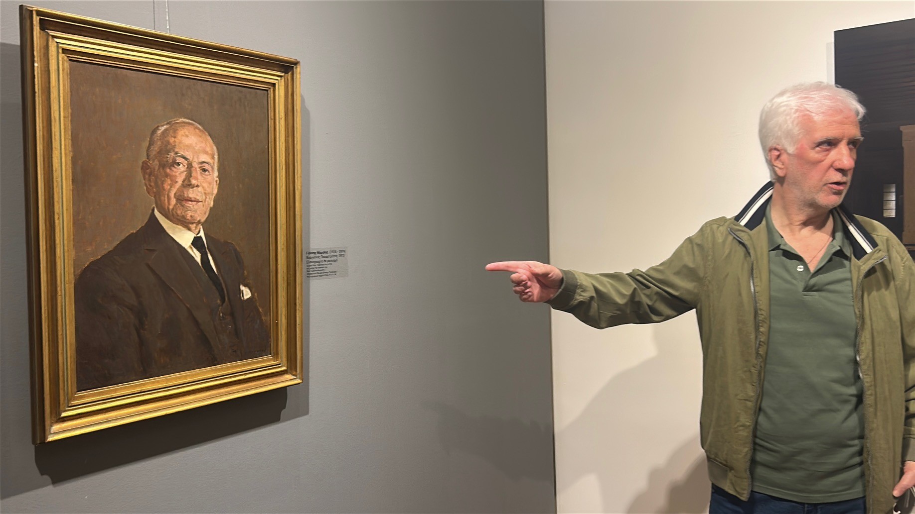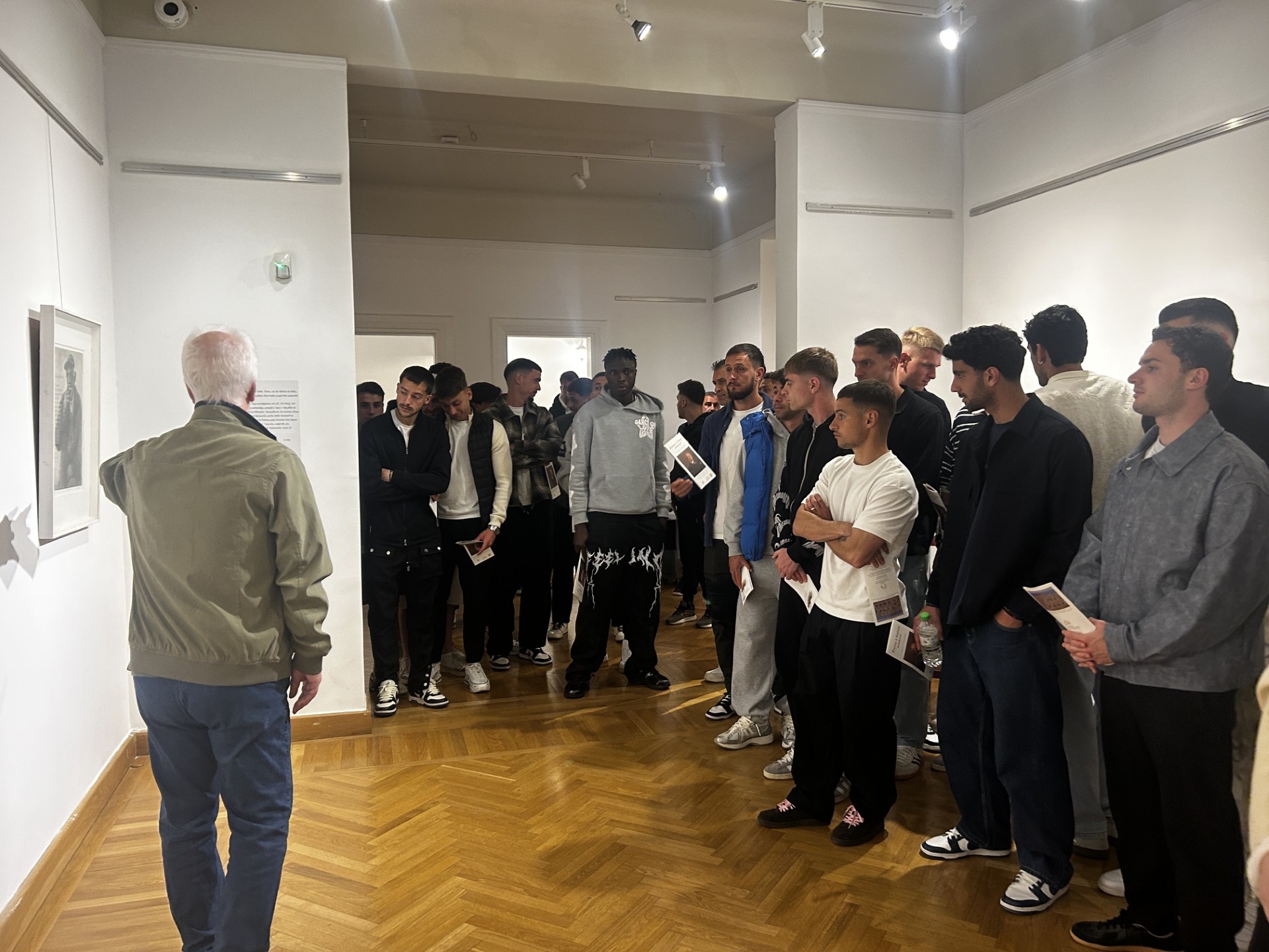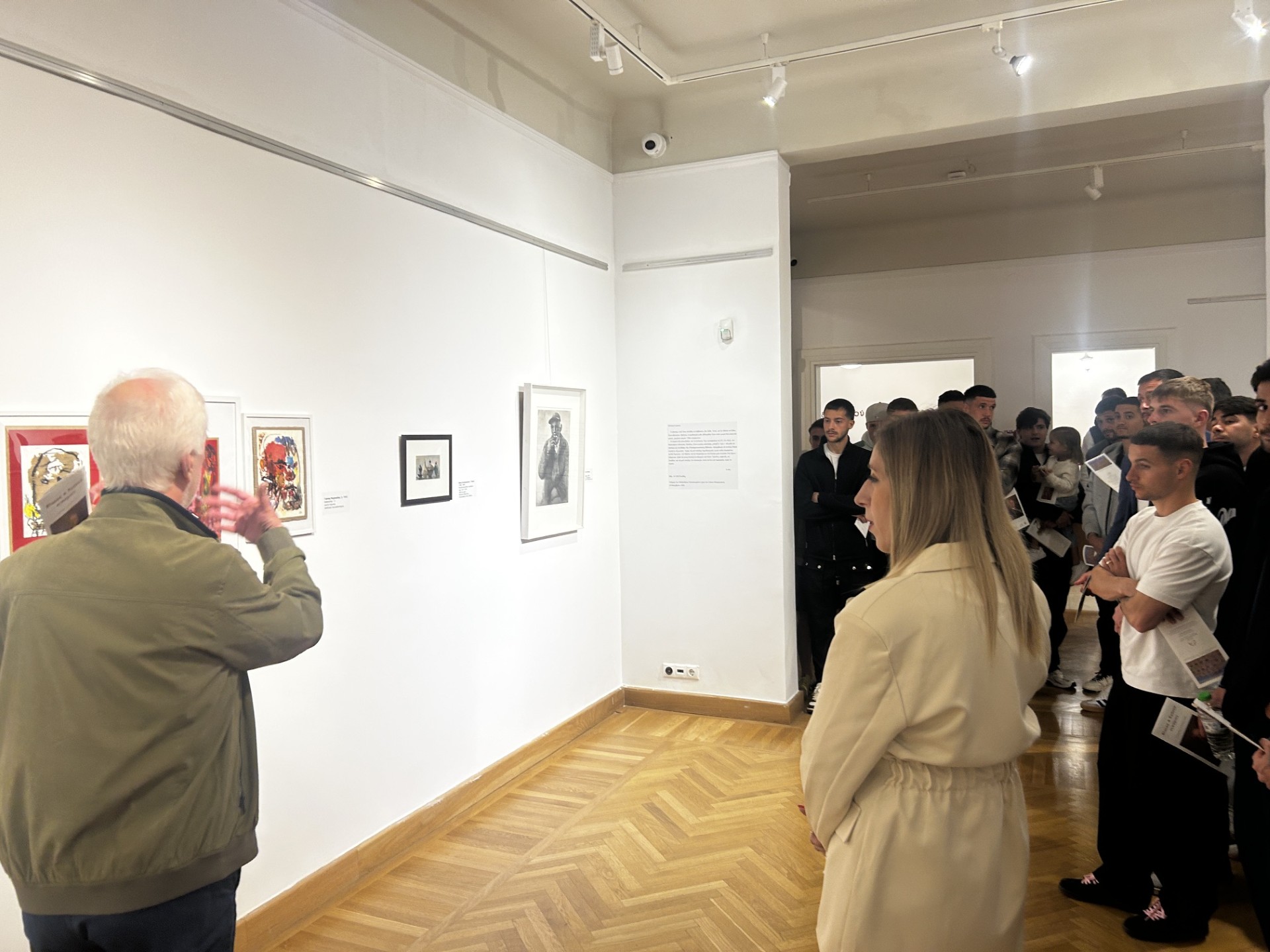 Ο υπεύθυνος της Πινακοθήκης Χρήστος Γαρουφαλής ξενάγησε την ομάδα στους χώρους της έκθεσης, παρουσία μεταφράστριας, δίνοντας τόσο το συνολικό υπόβαθρο όσο και λεπτομέρειες για κάθε έργο ξεχωριστά.