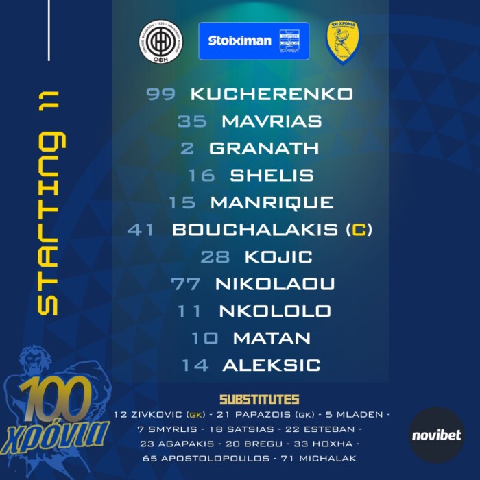 Γνωστή έγινε η ενδεκάδα που επίλεξε να παρατάξει ο Γιάννης Αναστασίου για το παιχνίδι απέναντι στον ΟΦΗ, που ξεκινά στις 18:00.