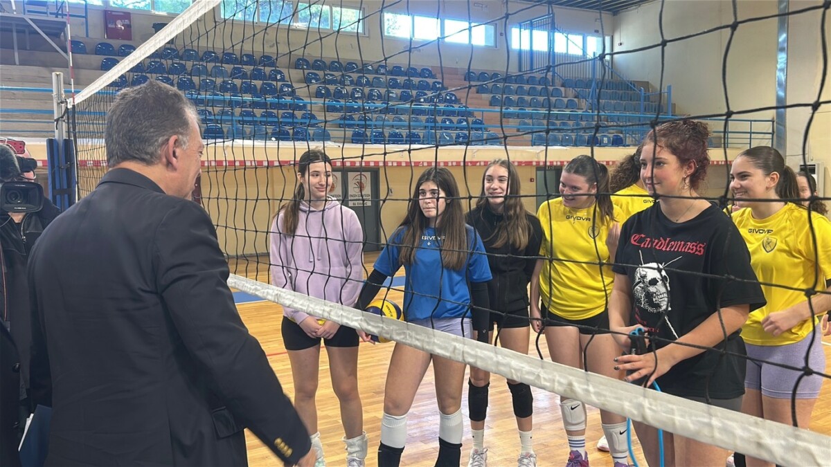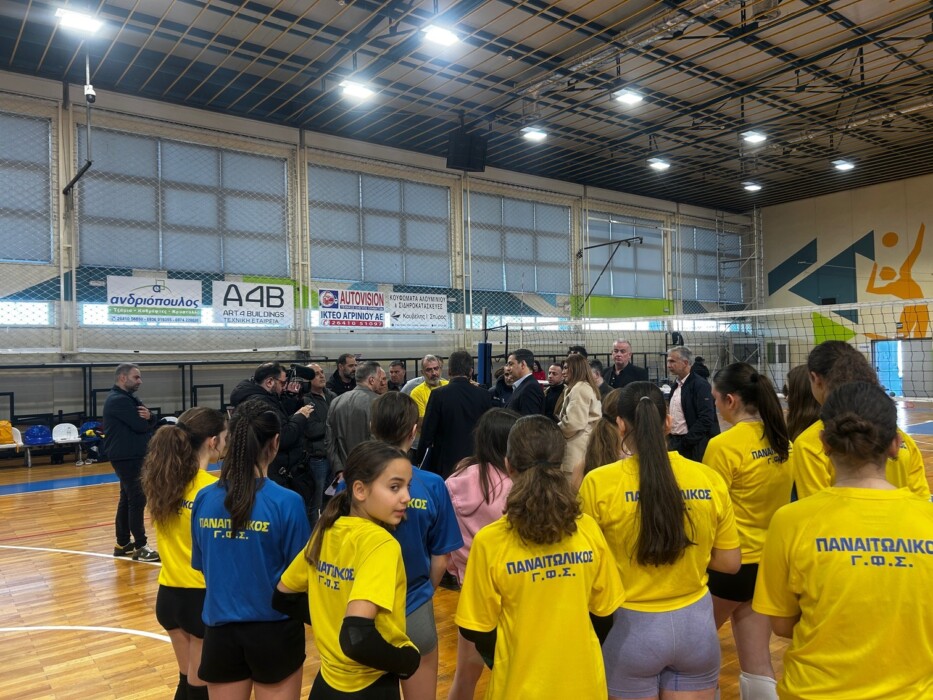 Στο κλειστό του ΔΑΚ είχε την ευκαιρία να μιλήσει με τις αθλήτριες του Παναιτωλικού και τον προπονητή τους, Γιώργο Ασημακούλα.