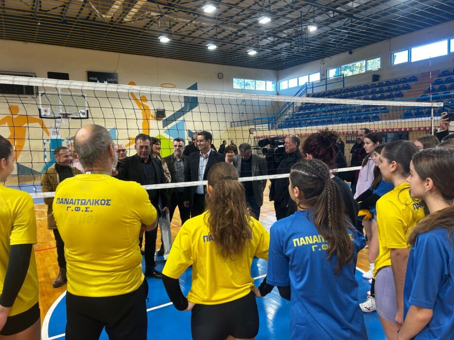 Στο κλειστό του ΔΑΚ είχε την ευκαιρία να μιλήσει με τις αθλήτριες του Παναιτωλικού και τον προπονητή τους, Γιώργο Ασημακούλα.