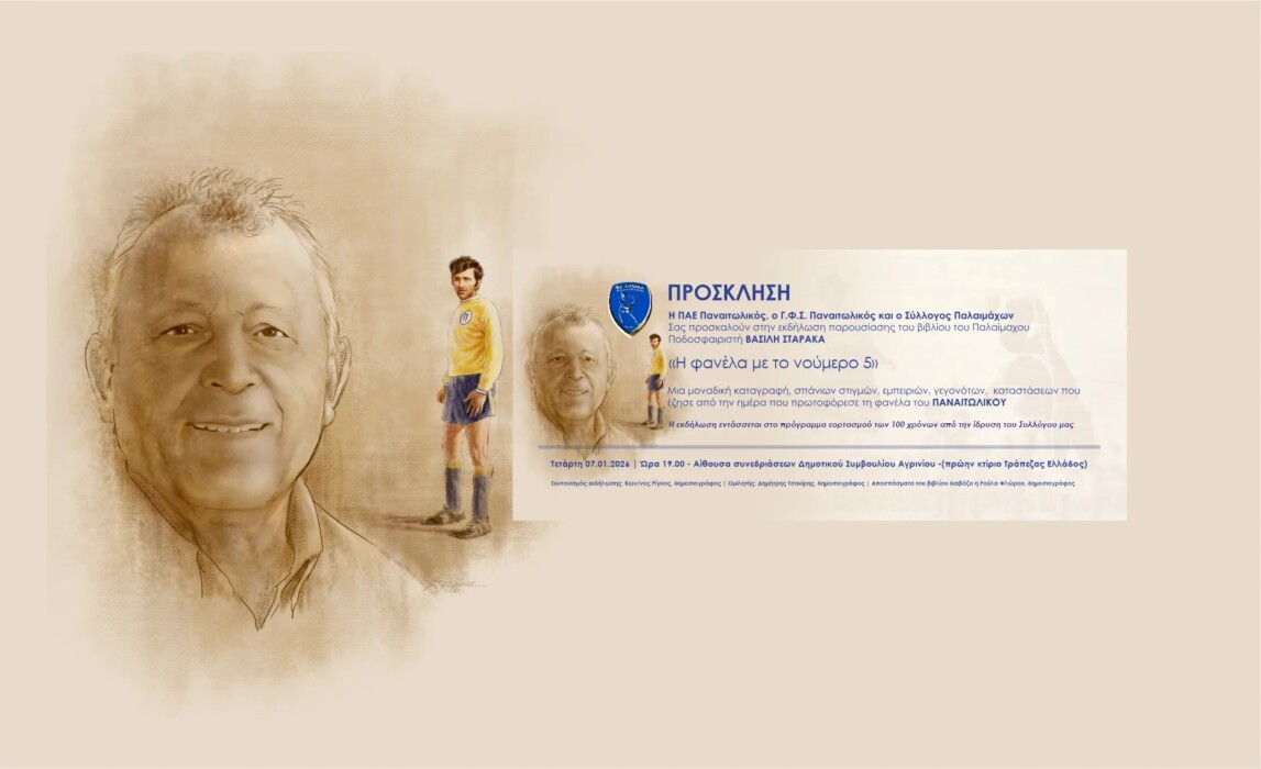 Η ΠΑΕ Παναιτωλικός ανέλαβε την έκδοση του βιβλίου «Η φανέλα με το νούμερο 5» που αποτελεί μια μοναδική καταγραφή βιωμάτων και αναμνήσεων του παλαίμαχου ποδοσφαιριστή Βασίλη Σταρακά.