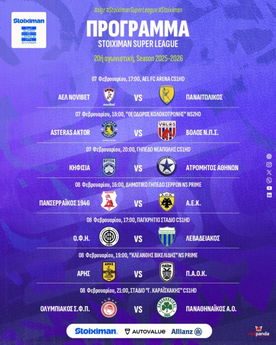 Η Super League κάνει σήμερα σέντρα στην 20η αγωνιστική με εξαιρετικά σημαντικές αναμετρήσεις. Μόνος στόχος η επιστροφή στα θετικά αποτελέσματα για τον Παναιτωλικό.