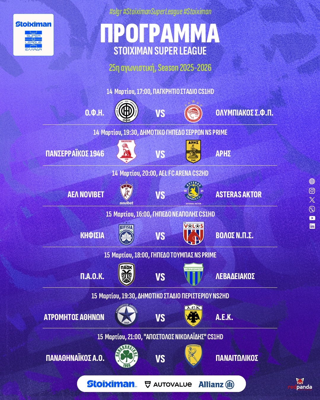 Η αρχή σήμερα στις 17:00 με το ΟΦΗ-Ολυμπιακός. Στις 19:30 Πανσερραϊκός-Άρης. Μισή ώρα αργότερα κομβικό ματς στην Λάρισα, ΑΕΛ-Αστέρας.