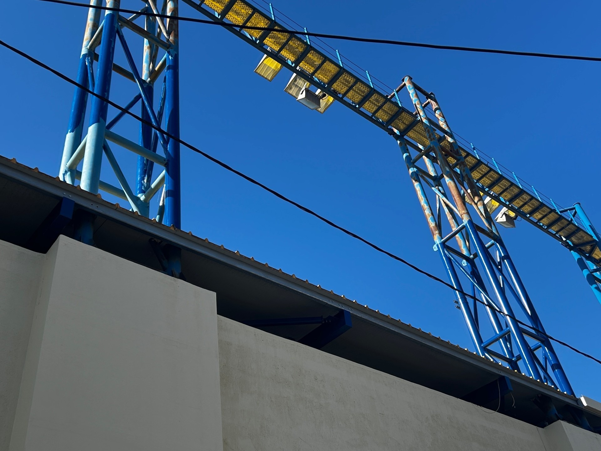 Παράλληλα, οι πυλώνες φωτισμού της εξέδρας αποκτούν νέα «πνοή» με φρέσκια μπογιά.