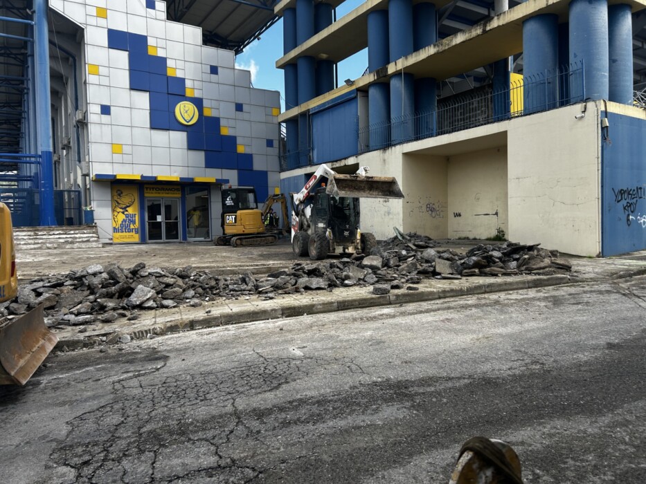 Τα σκαλοπάτια και ο χώρος μπροστά στην κεντρική είσοδο της μεγάλης εξέδρας επίσης ξηλώθηκαν, με το ψηφιδωτό με τον Τίτορμο που για χρόνια βρισκόταν μπροστά από την μπουτίκ να περνά στην ιστορία.