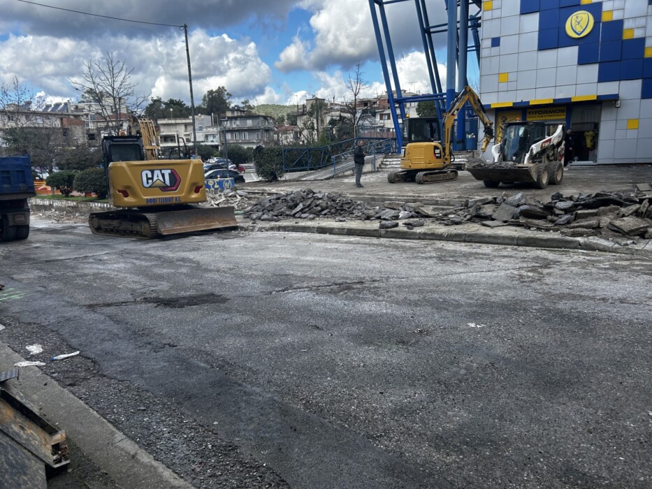 Τα συνεργεία της αναδόχου εταιρείας έπιασαν δουλειά, ξηλώνοντας πεζοδρόμια από χαμηλά, στην συμβολή με την οδό Βλαχερνών.